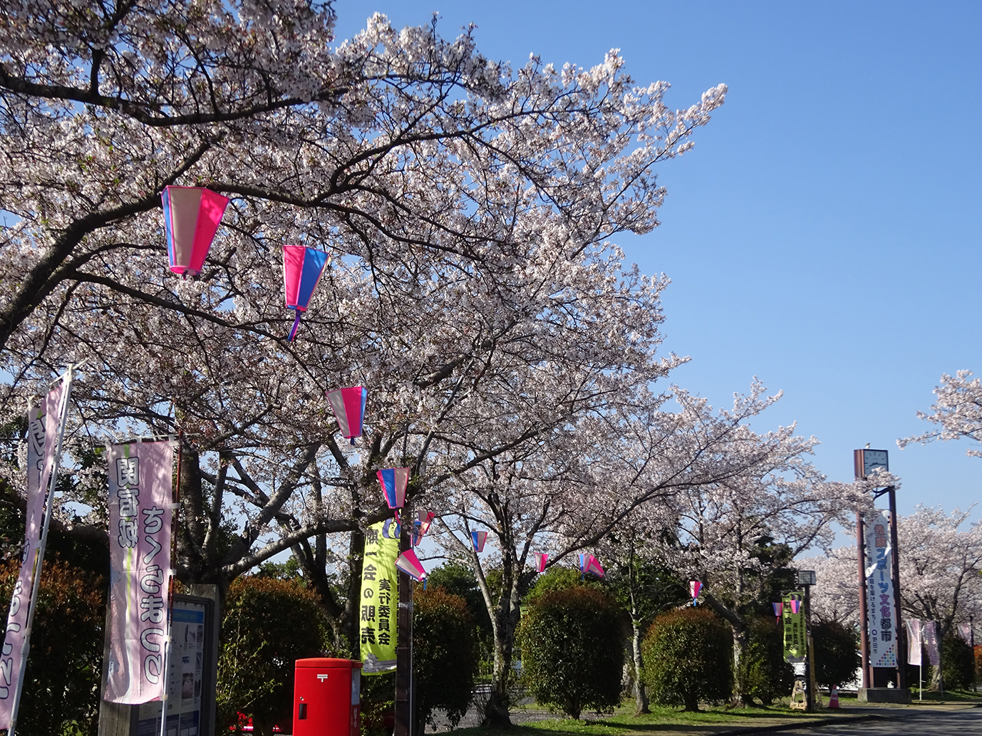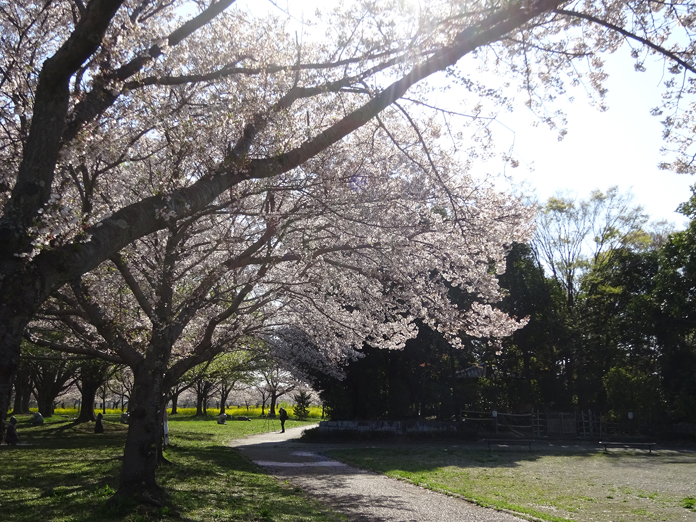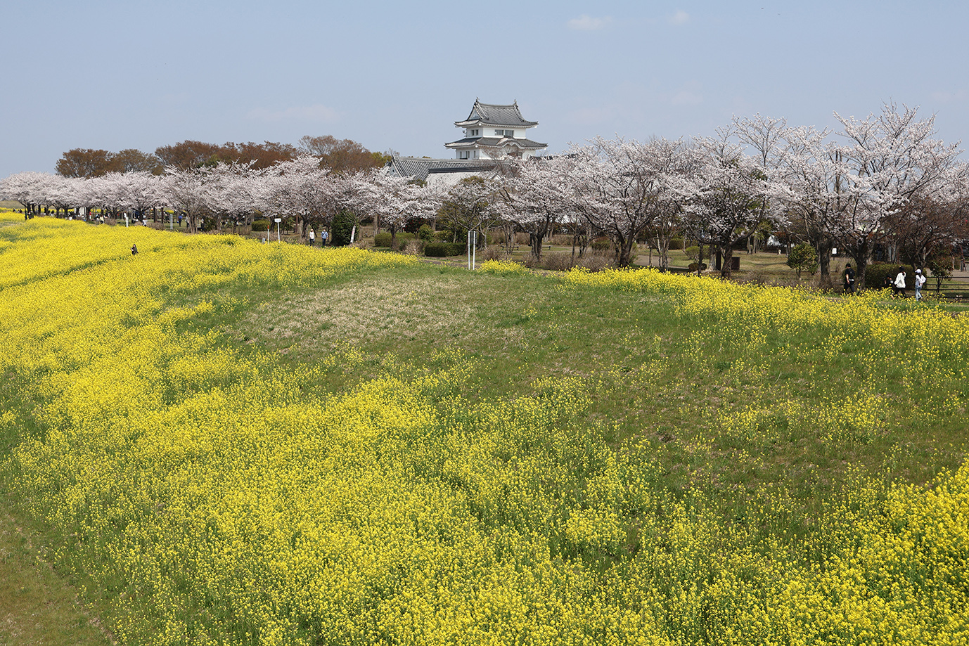 博物館を囲むように桜の花と菜の花が花盛りです。 |