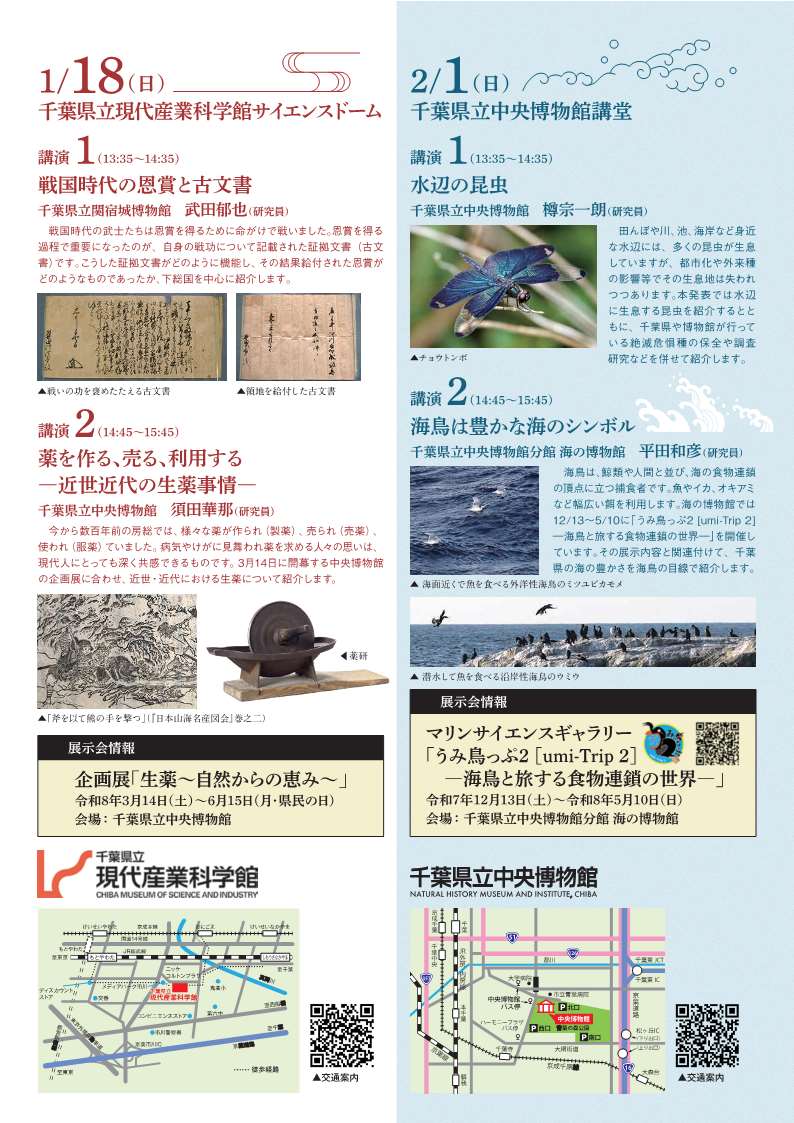 千葉学講座 【令和8年1月18日(日)・2月1日(日)】