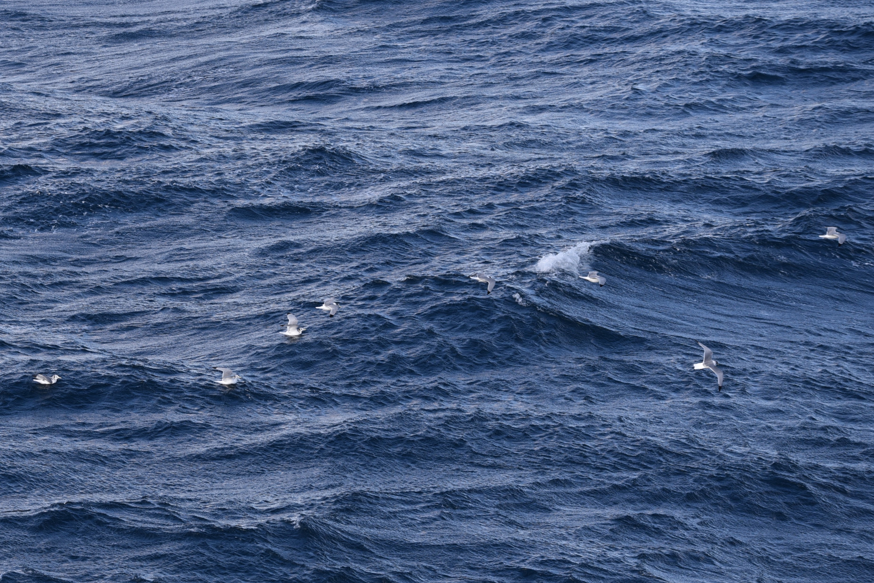 海面近くで魚を食べる外洋性海鳥のミツユビカモメ