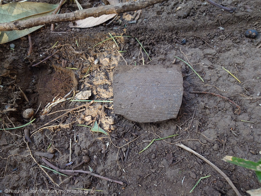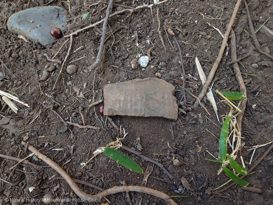 写真3 7号塚に土器片が落ちていた(奈良平安期の土師器と須恵器か)